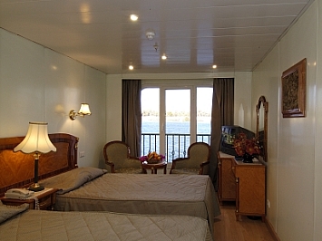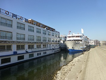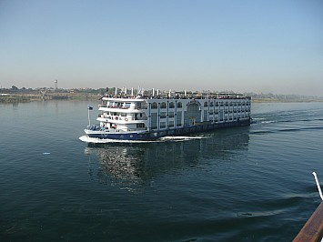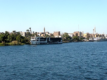 Vom Flughafen Wien Schwechat fliegen wir um 9.15 h ab und nach einer Flugzeit von 4.30 h erreichen wir Luxor. Mit den Bus fahren wir ca. 20 Minuten zu unseren Nilkreuzfahrtsschiff MS Nile Quest und beziehen unsere schön ausgestatten Kabinen. Leider gibt es das im Prospekt angekündigte Internet-Café nicht. Den Rest des Tages verbringen wir am Schiff. Am Abend gibt es eine Besprechung mit unseren Ägyptischen Reisebegleiter über den Verlauf unserer Reise. Wir sind eine Gruppe von 10 Personen. Derzeit sind noch ca. 10 weitere Passagiere am Bord, Freitags sollen noch weitere 30 Passagiere an Bord gehen. |