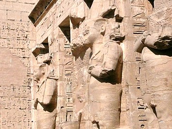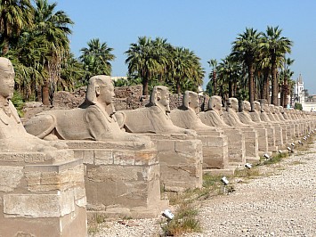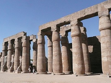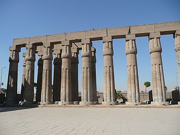 | Als nächstes fahren wir zum Luxor-Tempel. Zwei Kolossalstatuen von Ramses halten beim Eingang Wache. Von den ursprünglich zwei Obelisken steht nur noch einer - sein Gegenstück ziert den Palace de la Concorde in Paris. | |||
