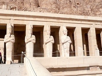 | Anschließen fahren wir zu Tempel der Hatschepsut. Der Terrassentempel wurde in einen Felsen hineingebaut und stammt aus den 15 Jh. vor Chr. | |||