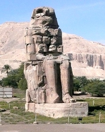 | Am Rückweg zum unseren Schiff machen wir noch einen Fotostopp bei den beiden Memnonskolosse. Die beiden 18 m hohen Giganten bewachten einst den heute völlig verschwundenen Totentempel von Amenophis III. | |||
