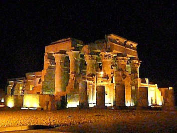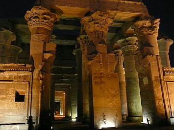 In Kom Ombo machen wir bei Scheinwerferlicht eine Besichtung des Tempels |