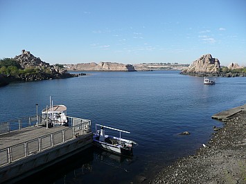 Heute sind wir in Assuan und haben wieder volles Programm. Zuerst fahren wir zum Hochstaudamm der den Nil auf eine Länge von 500 km aufstaut und den Namen Nassersee trägt. |
