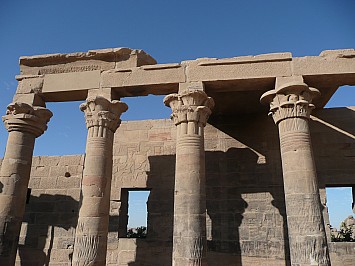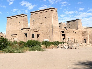 Mit einen Boot fahren wir zur Insel Philae um den dortigen Tempel zu besichtigen. Der Tempel stand nach der Errichtung des alten Staudammes 1902 teilweise unter Wasser. 1987 wurde der Tempel in einer Internationalen finanzierten Rettungsaktion in 44 000 Steinblöcke zerlegt und auf eine daneben liegende Insel originalgetreu wieder aufgebaut. |