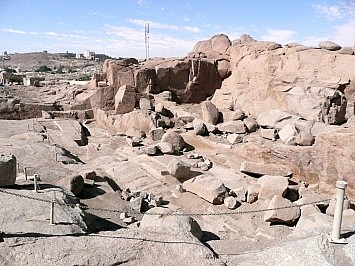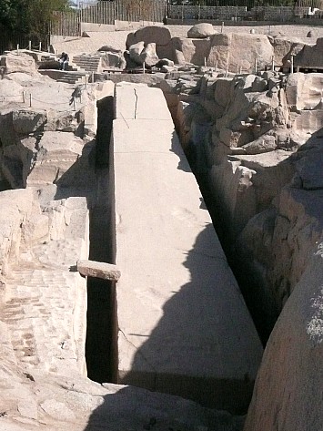 | Ein Steinbruch aus der Pharaonenzeit ist unser nächstes Ziel. Hier besichtigen wir einen 43 m hohen unvollendeter Obelisken, der wegen Risse im Gestein seinerzeit nicht fertig gestellt wurde. Der Steinbruch wurde über 3000 Jahre benutzt. | |||