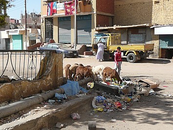 | Der heutige Vormittag steht uns zur freien Verfügung. Mit eine Kutsche machen wir eine Besichtigungsfahrt durch Assuan. Dabei besichtigen wir die große Moschee von Assuan und fahren dann durch einen Stadtteil (Armenviertel) wo für uns unvorstellbare Zustände herrschen. | |||