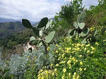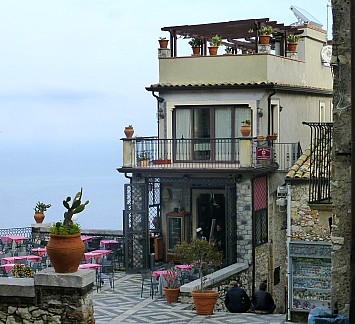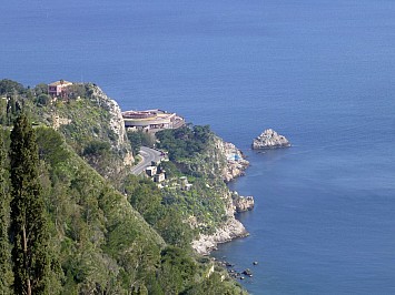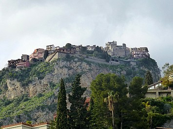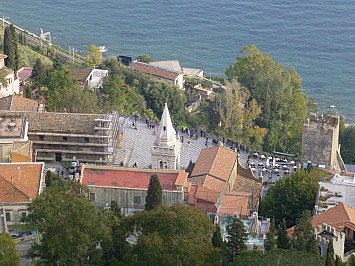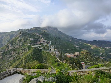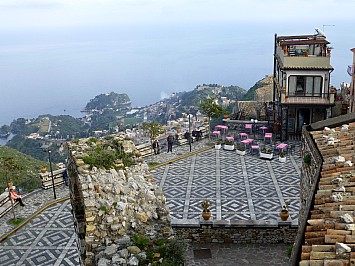 Von Castelmola hätte man einen wunderbaren Ausblick auf den 3330 m hohen Etna, doch leider hat er sich wieder in den Wolken versteckt. So muss ich mich mit den Blick auf Taormina begnügen. |