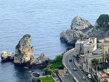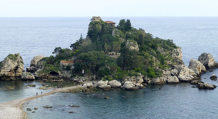 Ein Fotostop bei der kleinen Insel Isola Bella, ein bekanntes Ansichtskartenmotiv Siziliens. |