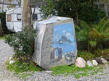 | Erwartungsgemäß trifft die vorausgesagte Schlechtwetterfront am Vormittag ein. Wie schon gehabt Regen und Wind den ganzen Tag, die Temperatur liegt bei 15°. So verbringen wir den Tag am Campingplatz. | |