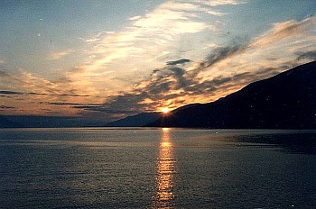auf einen Rastplatz am Lyngenfjord auf der Straße nach Tromsö hatten wir mit den Wetter Glück und konnten die Mitternachtssonne erleben |