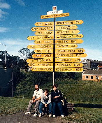 | Inspiriert durch einen Lichtbildervortrag von einer Motorradtour zum Nordkap in meinen Jugendzeit entwickelte sich der Wunsch einmal zum Nordkap zu fahren. 1986 war es dann soweit diese Reise mit unseren Gespann anzutreten, mit auf dieser Tour war auch unser Sohn Christian und ein uns bekanntes Ehepaar. | |